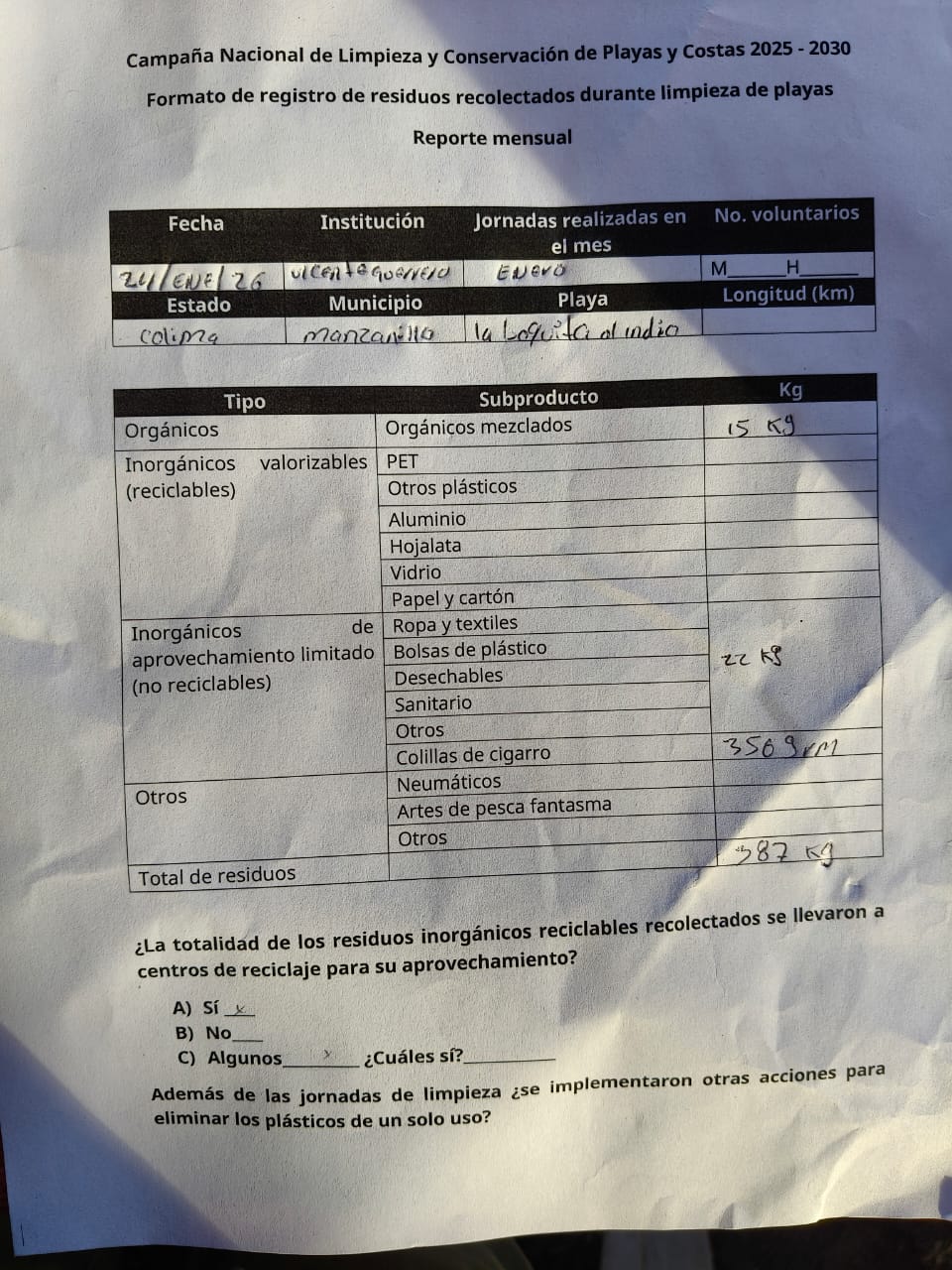 Entre lo recolectado fue: